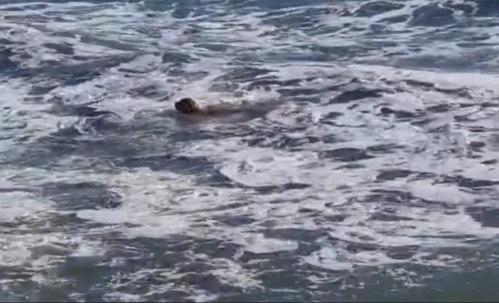 Héroe Héroe Se les fue el perrito al mar, lo llevó la corriente y un ciudadano hizo el rescate más especial del año: el video
